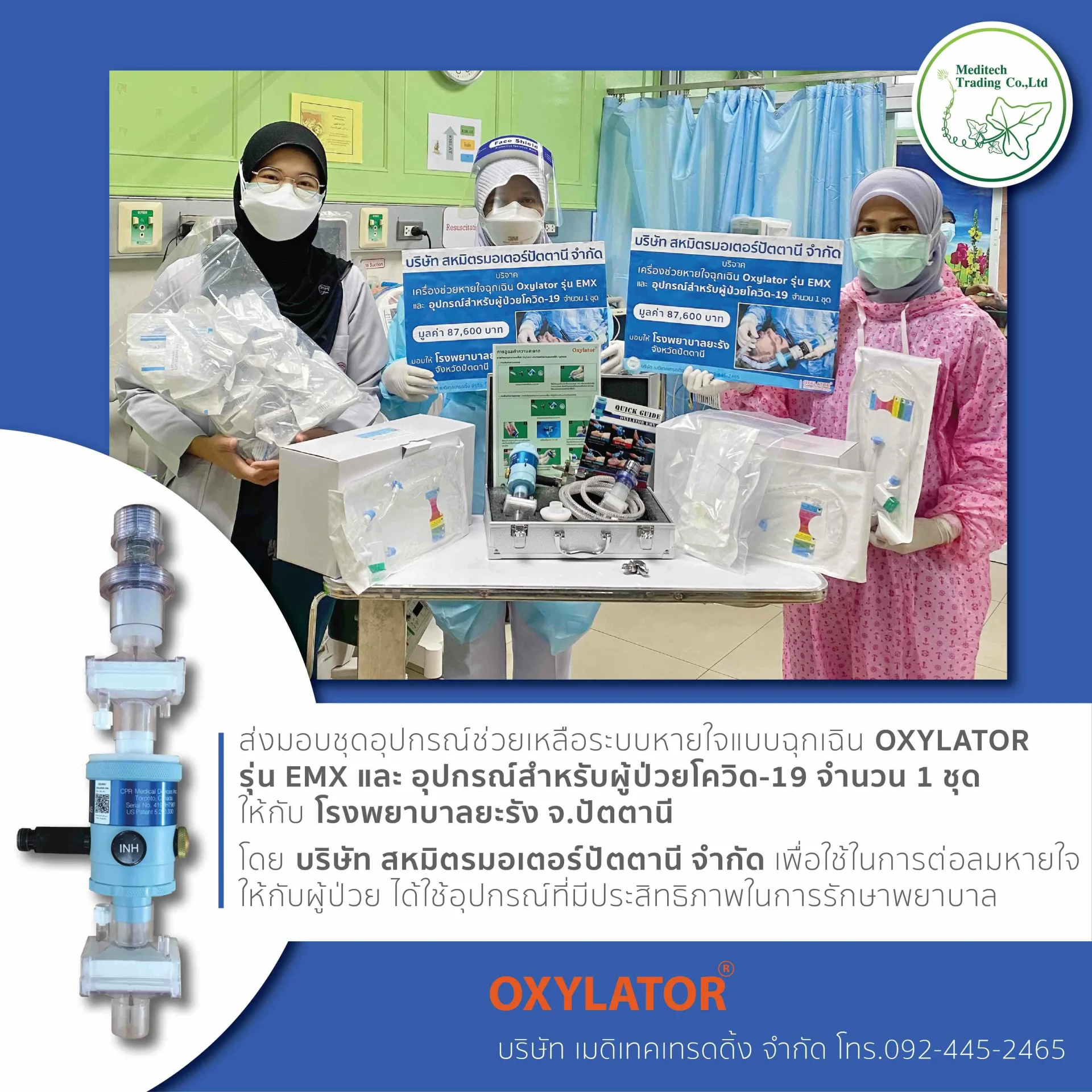 บริจาคชุดอุปกรณ์ช่วยเหลือระบบหายใจแบบฉุกเฉิน โดยบริษัท สหมิตรมอเตอร์ปัตตานี จำกัด